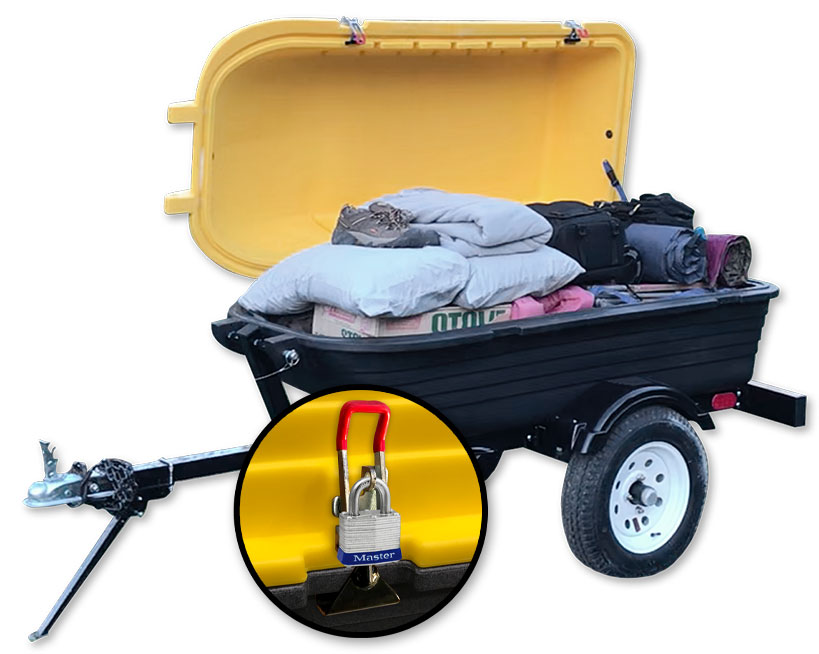Keep it secure! The trailer chains can be locked around a tree and latches can be locked.