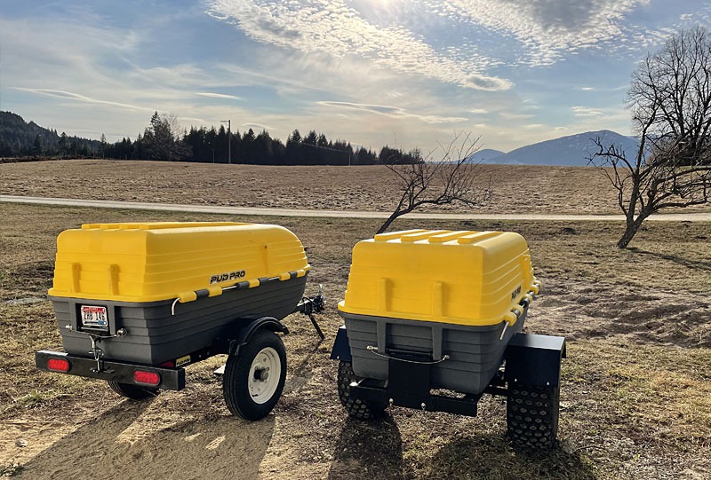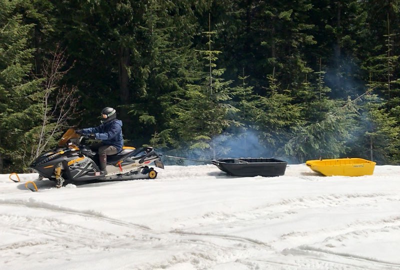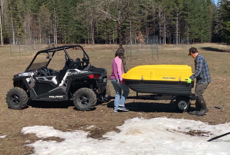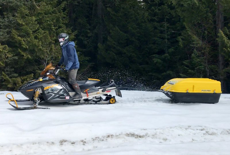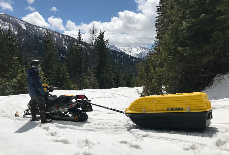 Remove two pins and the Pud Pro™ is easily separated from the trailer. The Snowmobile harness is connected with one pin. Remove the hinge pin and separate the two haves to double your sled towing capacity by linking the two halves together, or use the two halves as small boats.